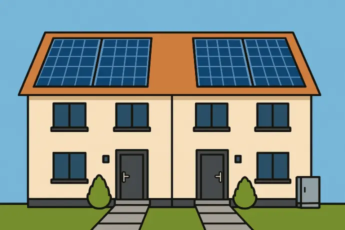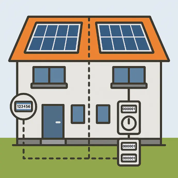 Jede Haushälfte erhält eine eigene PV-Anlage mit separatem Strom-Verteilerschrank. So bleibt die Abrechnung klar getrennt.