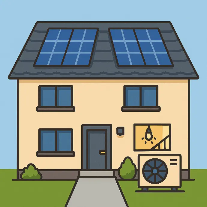 Die PV-Anlage wird gezielt für die Wärmepumpe und den allgemeinen Stromverbrauch (z. B. Beleuchtung, Treppenhaus) genutzt.